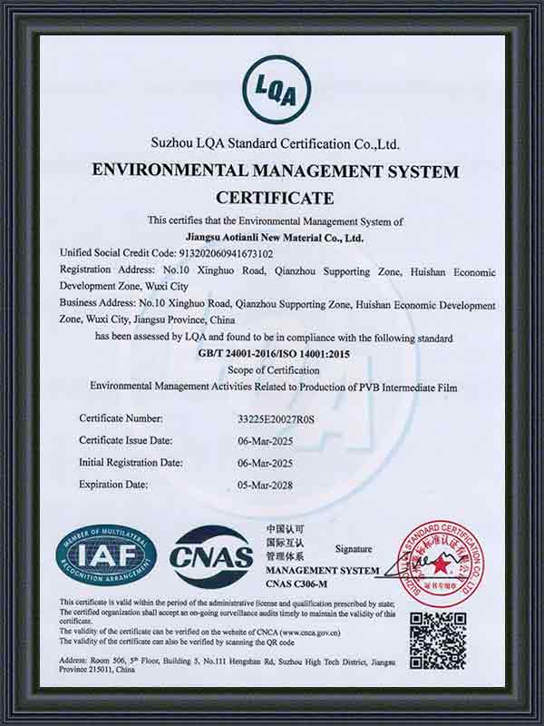 একটি যুগে যখন টেকসই একটি বিশ্বব্যাপী অগ্রাধিকার হয়, এটিএল পরিবেশগতভাবে দায়বদ্ধ উত্পাদন প্রতিশ্রুতিবদ্ধ। সংস্থাটি কঠোর পরিবেশ সুরক্ষা নীতিগুলি অনুসরণ করে, পরিবেশ বান্ধব উত্পাদন প্রযুক্তি ব্যবহার করে এবং নিশ্চিত করে যে এর সমস্ত স্থাপত্য পিভিবি ইন্টারলেয়ার ফিল্মগুলি ইএন, এএসটিএম এবং আইএসও শংসাপত্র সহ প্রাসঙ্গিক আন্তর্জাতিক সুরক্ষা এবং পরিবেশগত মান মেনে চলে।